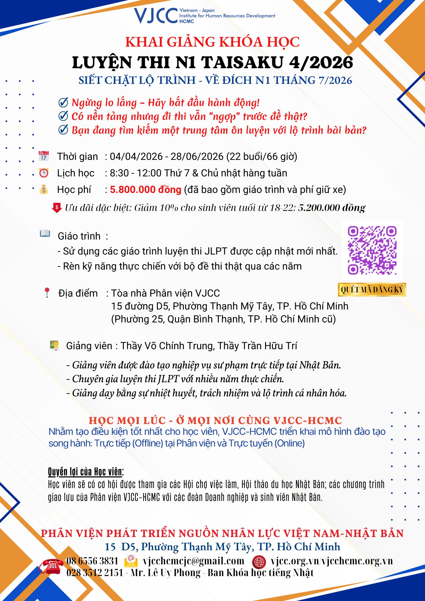 KHAI GIẢNG KHÓA HỌC LUYỆN THI N1 TAISAKU 3/2026