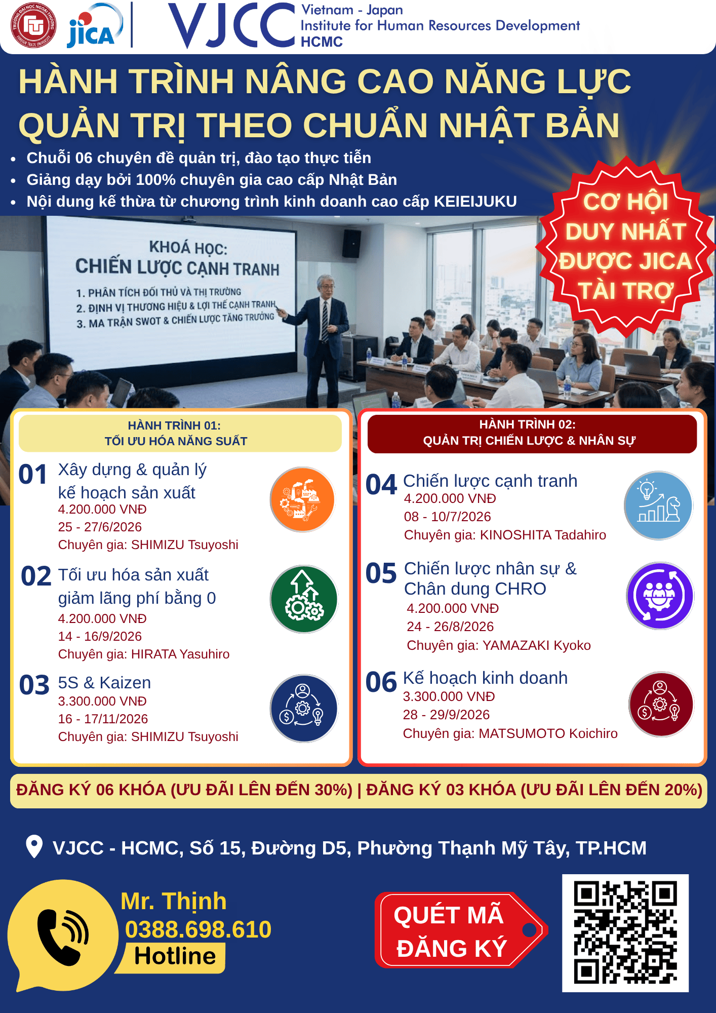 Có. Nội dung chương trình được triển khai với đội ngũ chuyên gia Nhật Bản và định hướng chuyên môn từ hệ giá trị Keieijuku.